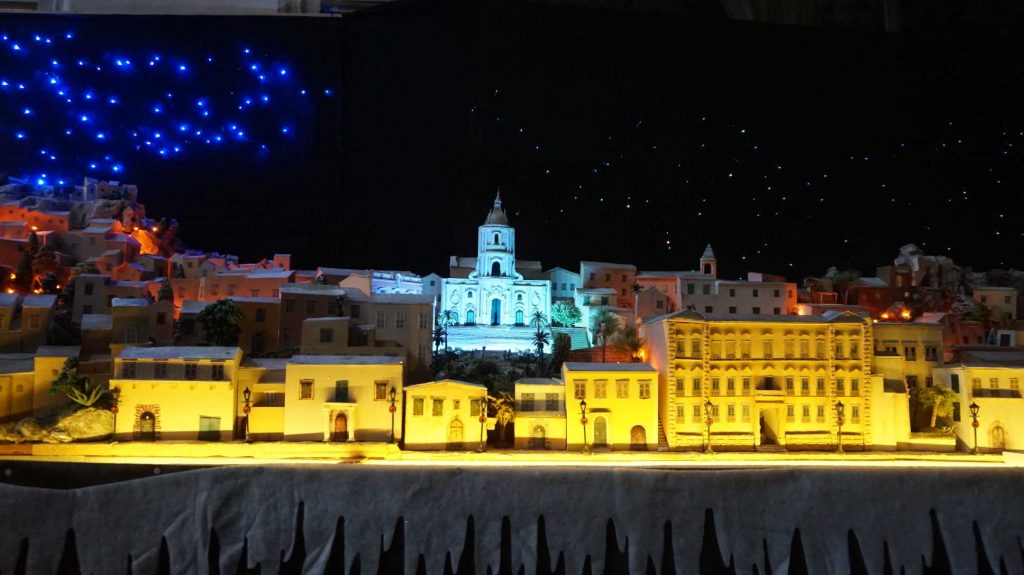 This presepe, now 13 metres long, shows Modica as it was in the late 19th century. It started as a single piece with the clock tower and San Pietro, and over the years it has grown to take in all of Corso Umberto. Built of polystyrene, wood and bits of whatever I can find, (from toilet rolls to shampoo bottles) the presepe was displayed for 4 years in the church of San Pietro. Since Covid, it’s been difficult to find a home for the presepe, but hopefully this will be resolved soon.